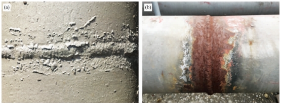 (2)部分设备和管道的涂层施工质量差,尤其是在焊缝、法兰连接处和阀门等区域涂层易发生开裂和脱落。