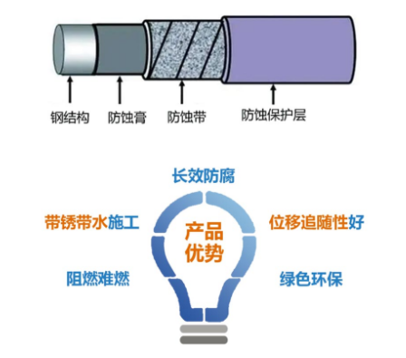 1. 配套系统是关键:包覆防腐蚀技术采用多层紧密压接的保护体系,内层防蚀育、中层防蚀带和外层防蚀保护层构成一个整体的长效包覆防腐系统。